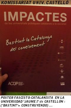 ¿Ejemplo de ello? : la ( ¡otra más!) sentencia dictada por la Sala de lo Contencioso-Administrativo del TSJCV (DOCV 05.05,2013) en la que se avala el uso de las INSULTANTES expresiones "académicamente lengua catalana" y "ámbito lingüístico catalán" para nuestra HISTÓRICA LENGUA VALENCIANA en los Estatutos de la UJI de Castellón. Rechazando (¡menos mal!) el delirante idiotismo lingüístico "país valenciano " como equivalente a "Comunitat Valenciana". Sigue la barbarie.