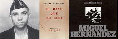 Con la celebracion del 75 aniversario del fallecimiento, por enfermedad, del poeta stalinista Miguel Hernández , la desencuadernada izquierda del socialismo mitómano nos sigue montando , por tierra , mar y aire, sus campanudas campañas pro-creación de falsos iconos ocultadores de tristes miserias y falsedades. Toda una opereta bufa en el ruedo circense del gran teatro del mundo , carnaza doliente para la rugiente chusma republicanera…